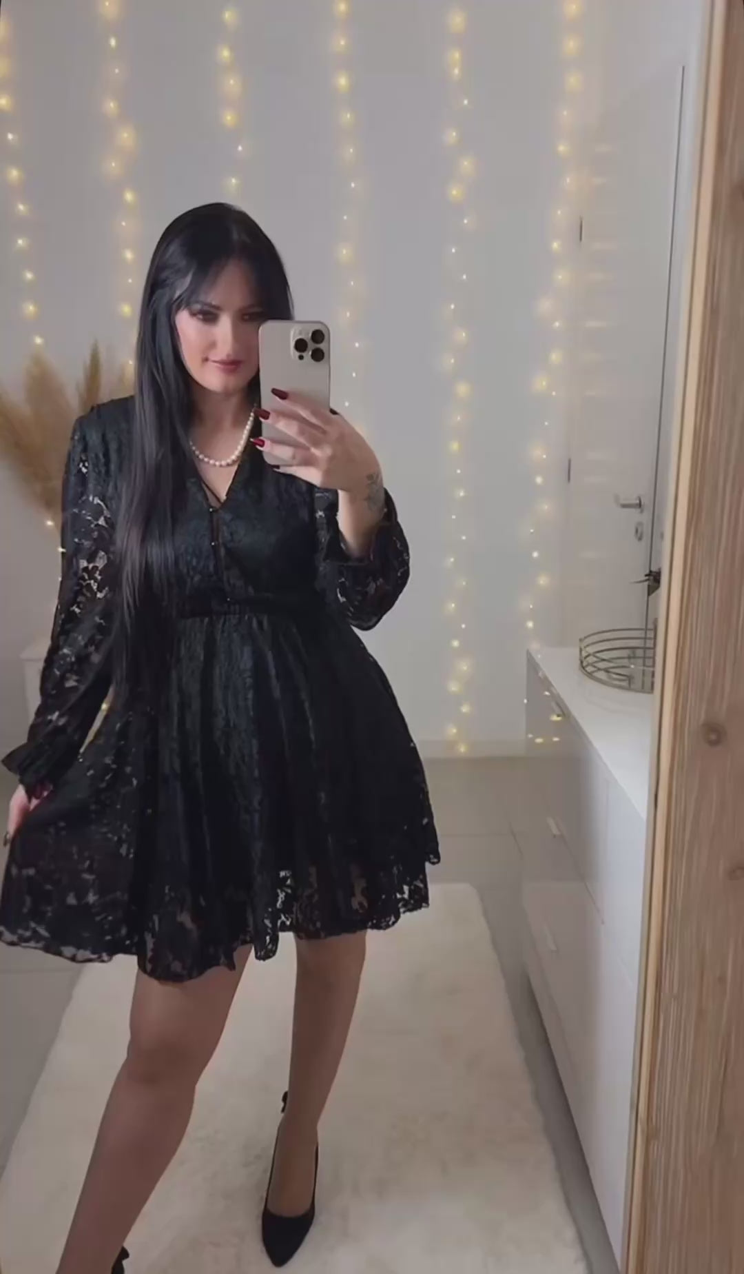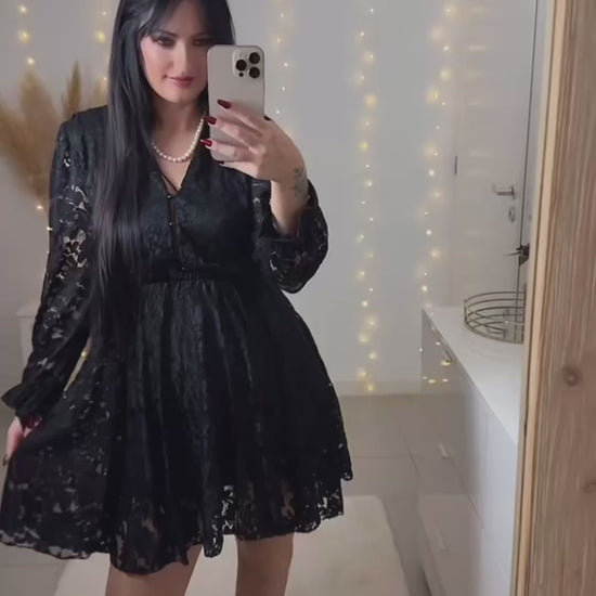 Robe élégante en dentelle noire, avec doublure intérieure.