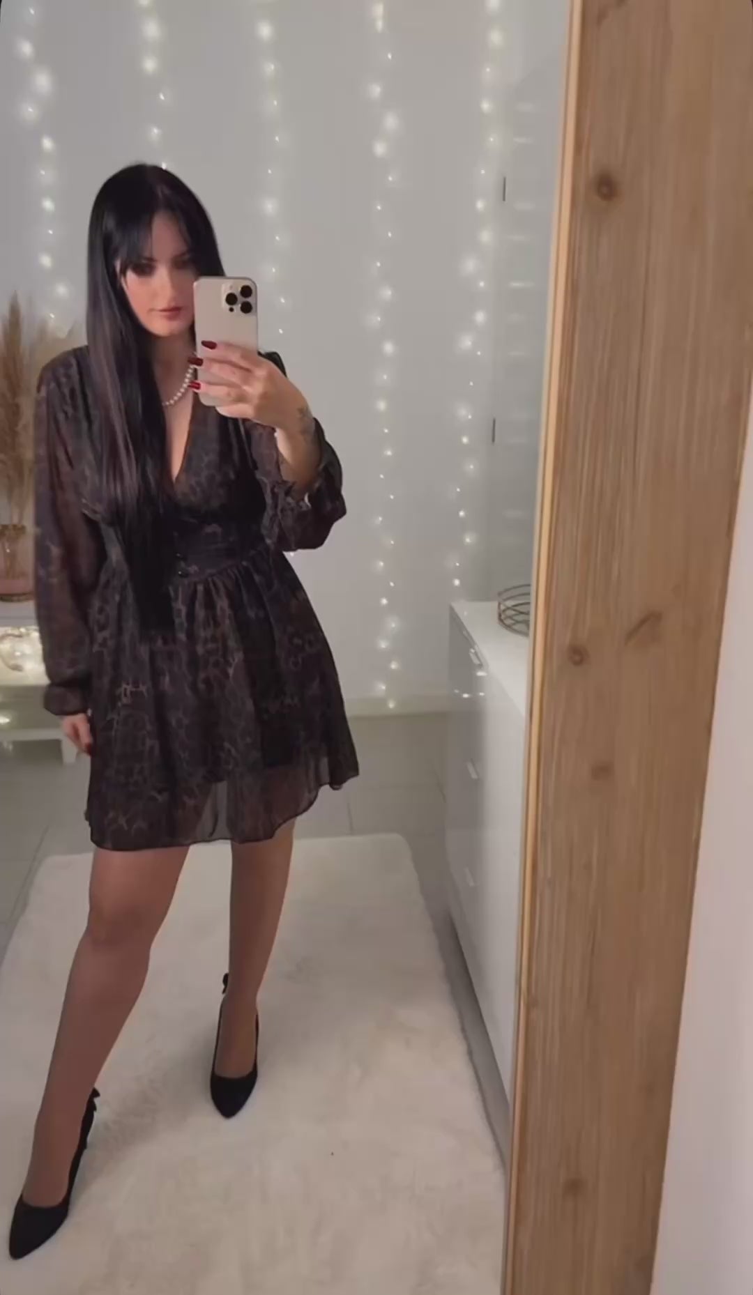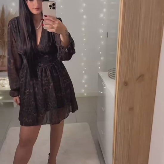 Robe Marley, noire à motifs, avec manches longues, boutons et doublure en viscose.