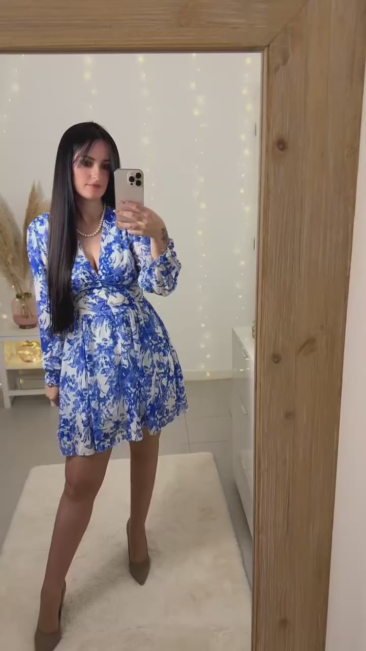 Robe Marley, Santorin, avec manches longues, boutons et doublure en viscose.